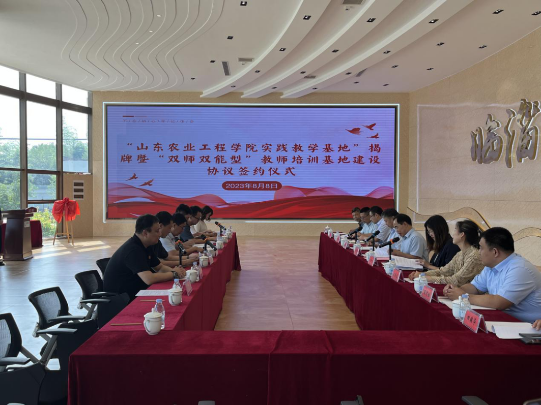 随后,李进京和贾继元共同为“今年会官方网站实践教学基地”揭牌。机械电子工程学院院长赵志桓、临淄区科技局局长孙贤才与淄博禾丰种业科技股份有限公司朱俊科三方签署“双师双能型”教师培训基地建设协议。
