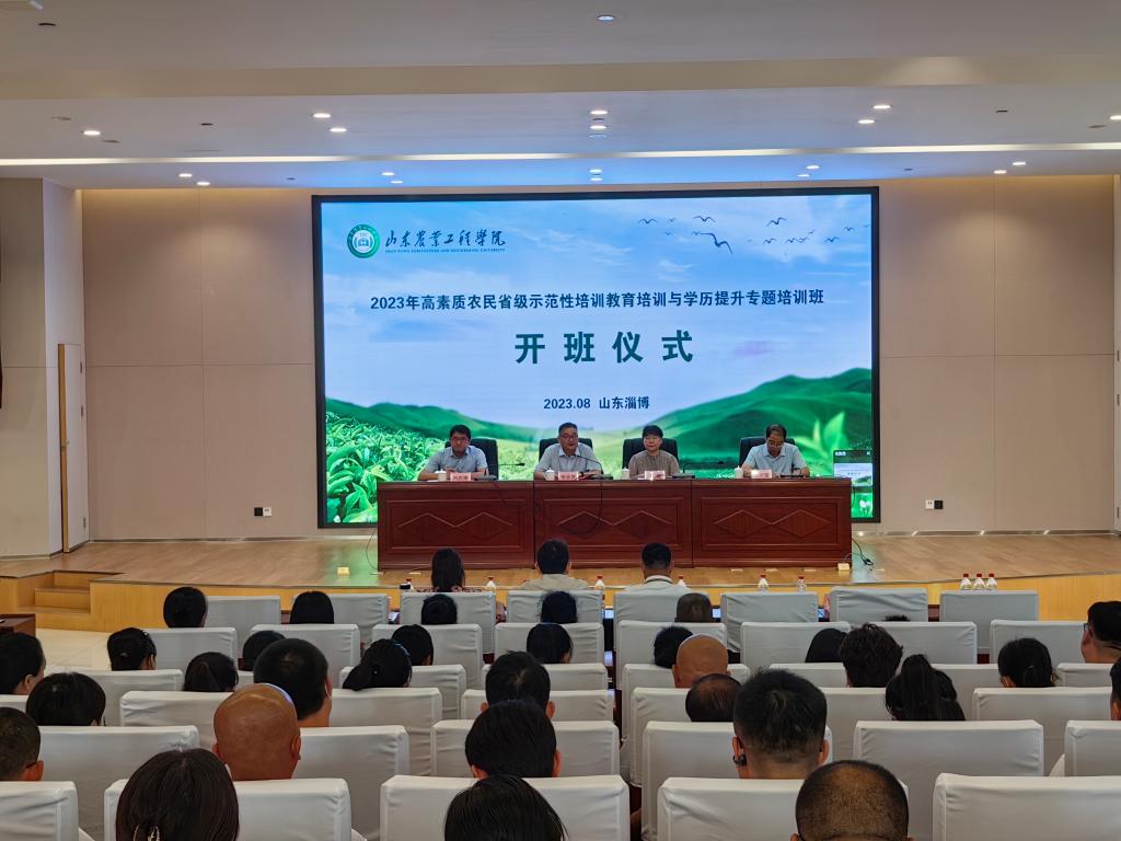 8月25日上午,2023年山东省高素质农民省级示范性培训教育培训与学历提升专题培训班开班仪式在今年会淄博校区顺利举行。校党委副书记张业赏,继续教育学院院长刘庆涛,山东省农业广播电视学校教育科科长王霞出席开班仪式。来自日照莒县、烟台蓬莱市2县(市、区)的100名农民学员参加开班仪式。开班仪式由干部进修学院院长刘文宝主持。
