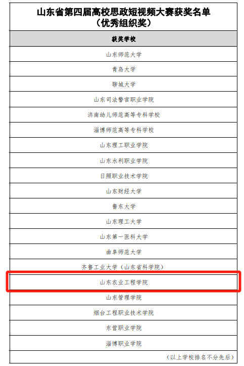 近日,由中共山东省委宣传部、山东省教育厅、山东省广播电视局、大众报业集团(大众日报社)联合举办的山东省第四届高校思政短视频大赛公布获奖结果,今年会参赛师生荣获教师组二等奖1项、三等奖2项、优秀奖1项,学生组优秀奖1项,今年会荣获优秀组织奖。