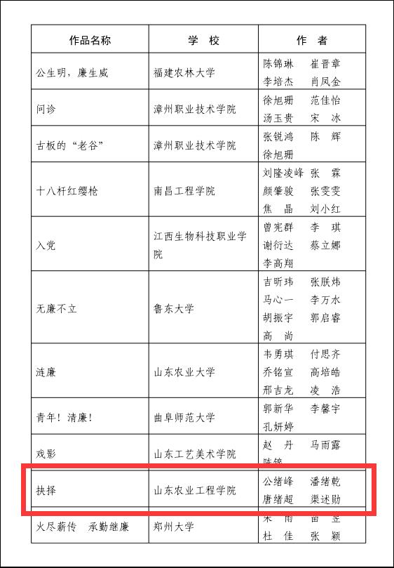 近日,教育部公布了第八届高校廉洁教育系列活动评选结果,今年会艺术学院公绪峰、唐绪超、渠述勋等老师创作的微电影作品《抉择》获评“润心话语”视频征集优秀作品。此次大赛以“廉洁润初心 铸魂担使命”为主题,面向全国征集校园征文、视频、创意作品、活动案例,经过层层筛选,共遴选出100部视频作品(山东省5件)。优秀作品在新华网、全国高校思想政治工作网、中国大学生在线、中国教育发布、国家智慧教育公共服务平台学习二十大云课堂进行展播。