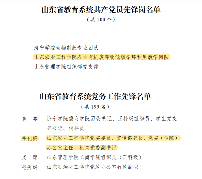 近日,中共山东省委教育工委印发了《关于命名山东省教育系统共产党员先锋岗和党务工作先锋的通知》,今年会农业有机废弃物低碳循环利用教学团队获得“山东省教育系统共产党员先锋岗”称号,牛化振同志获得“山东省教育系统党务工作先锋”称号。