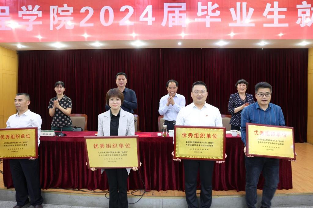 会上,杨玖庆宣读了《关于表彰2023届毕业生就业创业工作先进集体和先进个人的决定》。郑华美宣读《关于表彰学校第九届“互联网+”大学生创新创业大赛和第十八届“挑战杯”大学生课外学术科技作品竞赛优秀组织单位、优秀指导教师、优秀工作者及优秀项目的决定》。校领导分别为先进集体、先进个人、优秀组织单位、优秀指导教师等获奖单位和个人颁奖,获奖单位和个人代表分别进行经验交流。