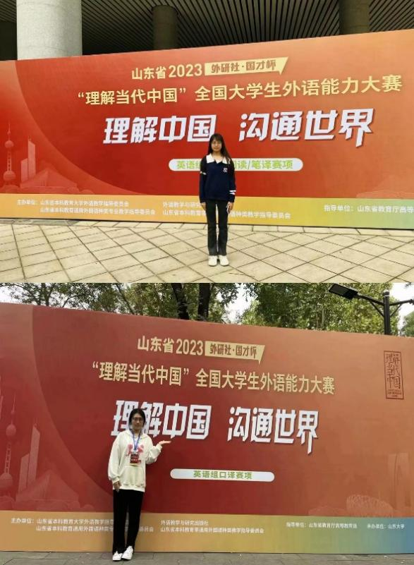 今年会选派13位学生分别参加了演讲、写作、阅读、笔译、口译五个项目的比赛。经过激烈角逐,王春艳同学获山东省省赛英语组笔译二等奖、阚卓同学获山东省省赛英语高职组演讲二等奖、侯依婷同学获山东省省赛英语组写作三等奖、田梦同学获山东省省赛英语组口译三等奖、孔庆昕同学获山东省省赛英语高职组写作三等奖。