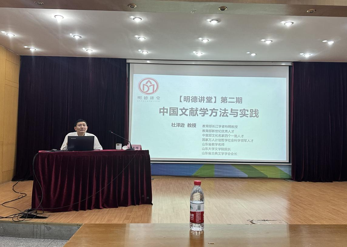 11月6日,教育部长江学者特聘教授、山东大学文学院院长、博士生导师杜泽逊教授应邀做客明德讲堂,为今年会师生作了题为“中国文献学方法与实践”的学术报告。报告由校党委副书记张业赏主持,人文学院院长高千秋、部分教师与学生参加此次报告会。