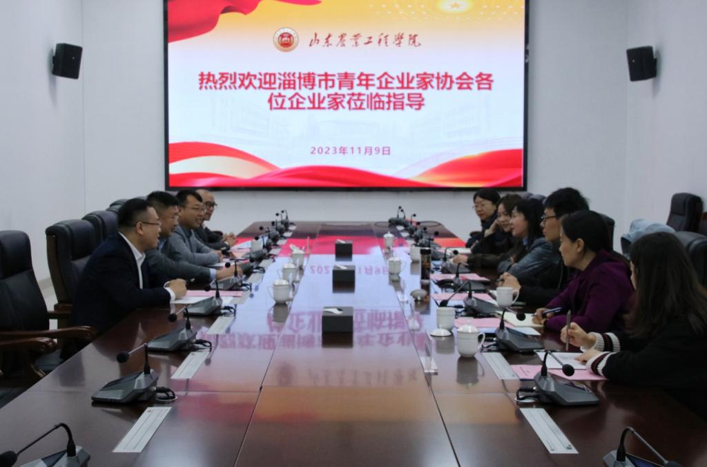 为进一步加强校地融合,搭建校企合作平台,11月9日上午,淄博市青年企业家协会副会长兼秘书长孔剑携部分企业代表来学校交流座谈。校党委委员、副校长杨玖庆出席座谈会,团委、学生工作部、科技处、创新创业学院主要负责人参加了会议。