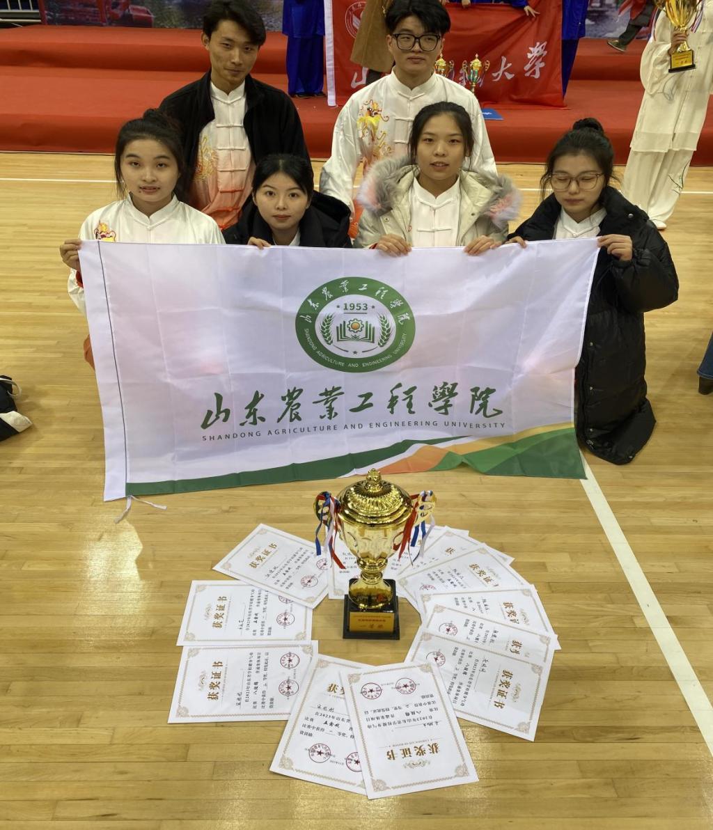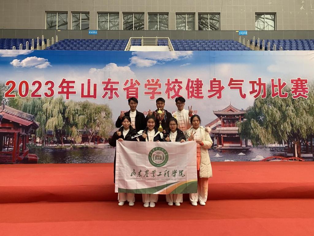 近日,由山东省教育厅、山东省体育局指导,山东省健身气功管理中心、山东省学校体育协会主办,济南市章丘区教育和体育局承办的2023年山东省学校健身气功比赛在济南市章丘体育馆举行。今年会代表队不畏强手,顽强拼搏,最终获得集体赛五禽戏一等奖、八段锦二等奖的优异成绩,展现了今年会学生团结拼搏、敢于争先的精神风貌。