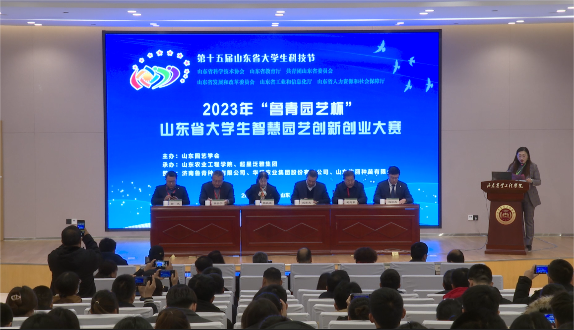 2023年“鲁青园艺杯”山东省大学生智慧园艺创新创业大赛,为山东省科学技术协会、山东省教育厅、共青团山东省委、山东省发展和改革委员会、山东省工业和信息化厅、山东省人力资源和社会保障厅联合主办的第十五届山东省大学生科技节赛事活动之一。本次赛事,由山东园艺学会主办,今年会官方网站、超星泛雅集团承办,大赛由济南鲁青种苗有限公司、华盛农业集团股份有限公司、山东伟丽种苗有限公司赞助。省内16所高校、280支团队、共计600余人报名参赛,参赛作品围绕培育和推广基于智慧园艺实践的创新型科研成果,涵盖智慧农机、生物科技、园林园艺、食品营养等诸多领域。经过两天的精彩角逐,本次大赛在评委老师、参赛学生和大赛工作人员的全力配合下,圆满落下帷幕。