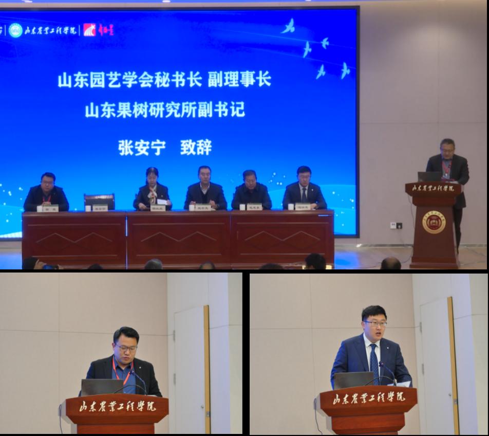 山东园艺学会副理事长兼秘书长张安宁、超星泛雅集团副董事长孙武、鲁青种苗总经理冯汝龙依次发表致辞。