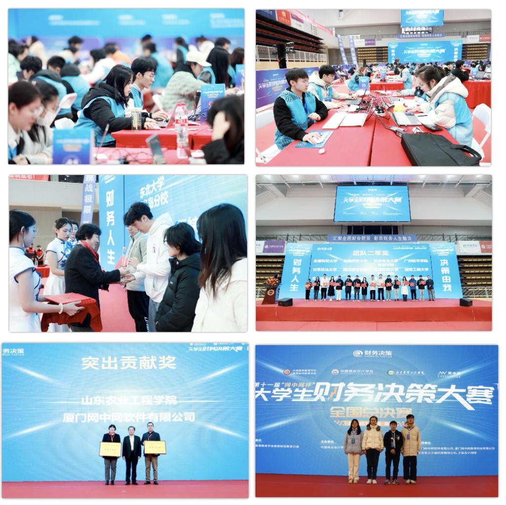 本届大赛自10月份启动以来,吸引了来自全国近300所本科院校的学生参与,通过激烈角逐,最终45支参赛代表队晋级全国总决赛。大赛以“财务人生,决策由我”为主题,基于网中网财务决策平台,模拟企业内部和外部环境,由四名学生共同配合完成工业企业虚拟运营,比赛内容涉及企业的运营、财务、管理、涉税等多个方面,重点考核学生对企业决策、财务管理、筹资投资、报账审核及成本核算管理、税务管理等实务技能。经过7个小时的激烈角逐,参赛选手在赛场上奋力拼搏,在赛项中展示自身的竞技水平,最终防灾科技学院、哈尔滨学院2所高校获得特等奖,东北大学秦皇岛分校等7所高校获得一等奖,今年会由谢萍老师指导的队伍表现出色,荣获全国二等奖的优异成绩。学校荣获赛事组委会颁发的突出贡献奖。