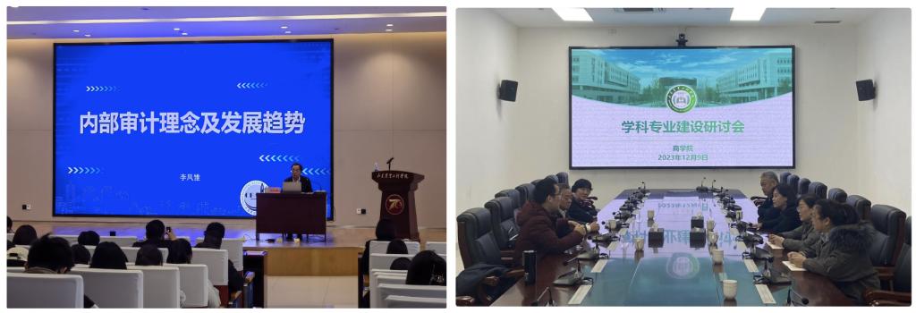 比赛期间,李凤雏会长为商学院师生作了一场题为《内部审计理念及发展趋势》的报告会,带领大家回顾了我国内部审计的发展历程,介绍了审计法的基本内容,让全体师生认识到内部审计高质量发展的重要性和中国式现代化内部审计建设的发展方向。报告会结束后,与会专家和商学院部分教研室主任、专业负责人开展了学科专业建设研讨会,就商学院专业特色学科建设规划展开深入讨论,为商学院未来的发展提供了重要的思路和方向。