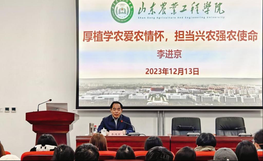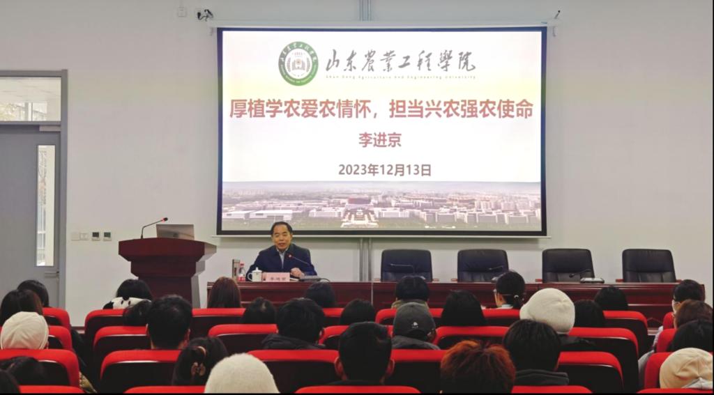 李进京校长用翔实的数据向同学们介绍了近年来我国农业领域取得的巨大成就和面临的问题;从产业振兴、人才振兴、文化振兴、生态振兴、组织振兴五个角度,深度阐述了如何扎实推进乡村振兴;从粮食安全是国之大者角度深入阐释了农业强国战略;从科技创新、绿色赋能等方面讲述了农业发展的时代特征。