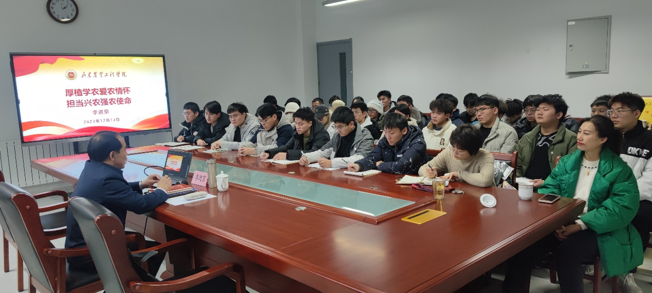 12月13日,校党委副书记、校长李进京以“厚植学农爱农情怀,担当兴农强农使命”为题,分别为资源与环境工程学院、机械电子工程学院学生讲授“形势与政策”课。