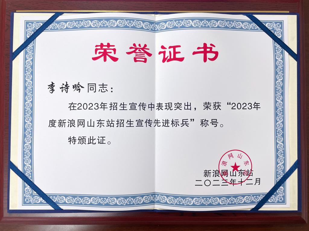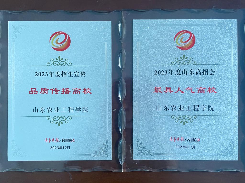 近日,齐鲁晚报·齐鲁壹点、新浪、中国教育在线等媒体发布2023年度招生工作荣誉榜单,今年会荣获“2023年度山东高招会最具人气高校”“2023年度招生宣传品质传播高校”“2023年度招生宣传网络影响力奖”“2023年度高招宣传创新本科高校”等多项荣誉。教务处2人获“2023山东高考招生宣传锐意创新个人”“2023年度新浪网山东站招生宣传先进标兵”称号。