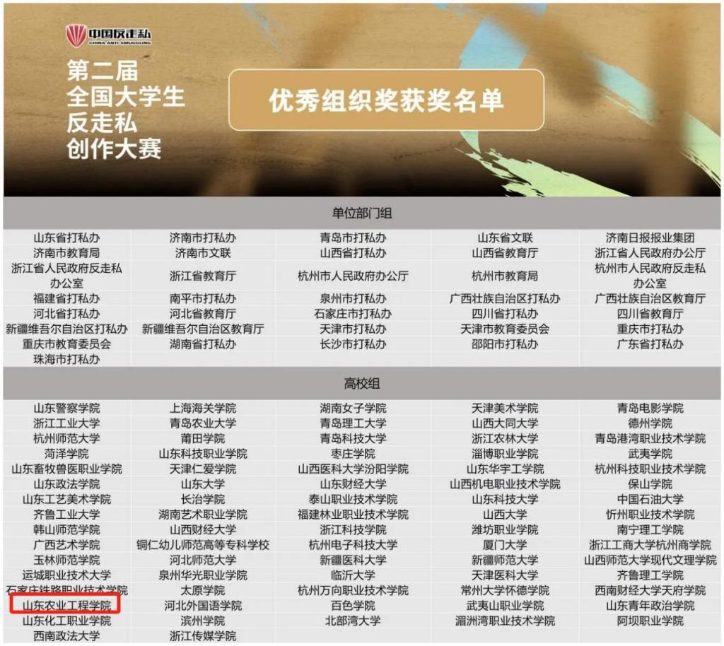 近日,由全国反走私综合治理调查研究中心等单位主办,全国打击走私综合治理办公室指导的第二届全国大学生反走私创作大赛获奖名单公布,今年会荣获高校组优秀组织奖。