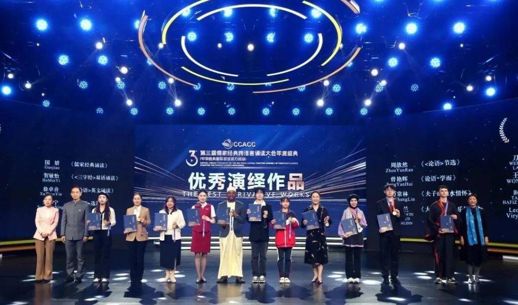 第三届儒家经典跨语言诵读大会启动后,今年会国际交流与合作处积极响应,联合校团委、学生工作部等部门精心组织,广泛发动,经认真甄选,最终确定8件诵读作品参赛,食品科学与工程学院联合国际交流和合作处报送的《传儒信之风,享中华文化》获大赛“银奖”,人文学院报送的《扬孝信之风,诵儒学新韵》、《天下未有不学而成者也》获大赛“铜奖”,国际交流与合作处组织国际学生演绎的作品《夫子的山水情怀》、人文学院报送的作品《忠恕之道,为仁之方》斩获“优秀演绎奖”。今年会国际学生纳苏夫和人文学院赵丽丽作为团队代表参加了年度盛典现场领奖活动。