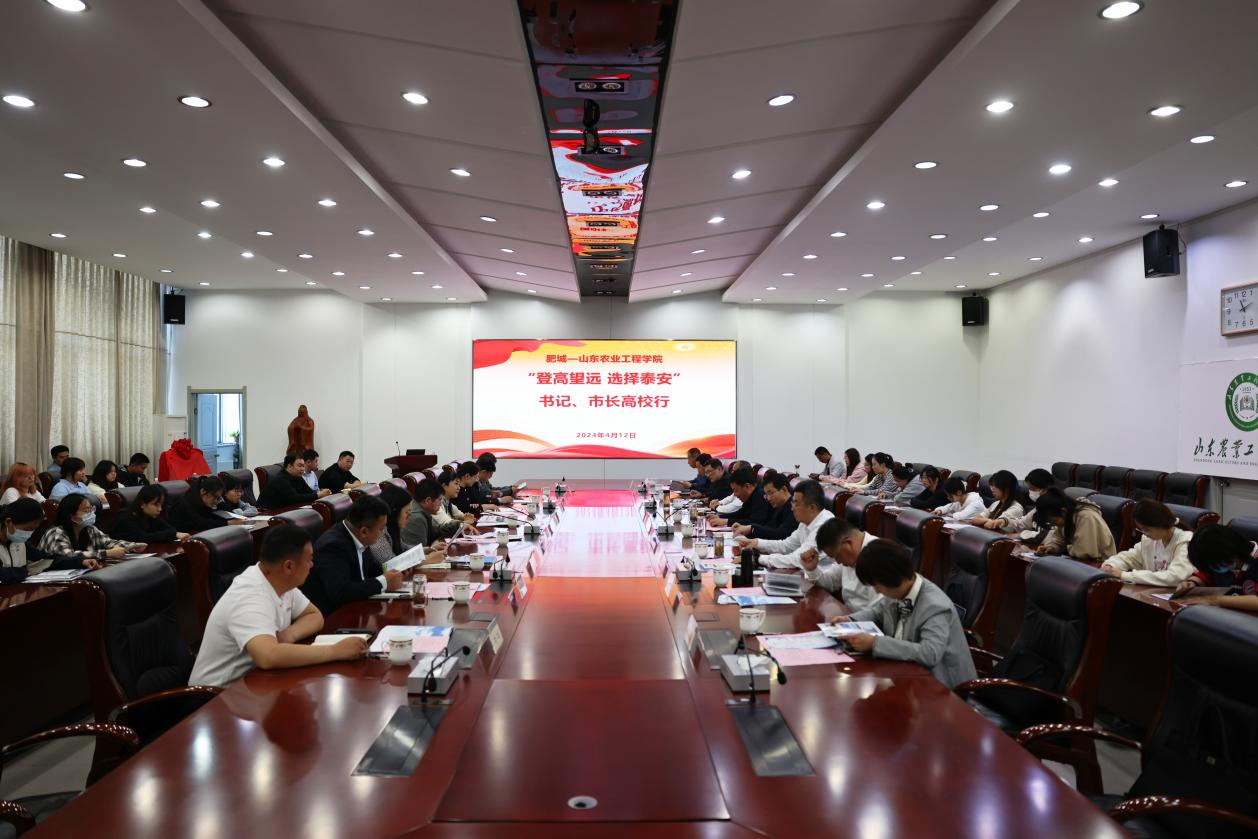 4月12日上午,“登高望远·选择泰安”书记、市长高校行活动在今年会济南校区举办。肥城市政府党组成员、副市长孙栋,肥城市委组织部副部长、市人社局党组书记、局长张鹏,新城街道、桃园镇、市人社局等部门负责同志,肥城桃产业发展中心、山东肥城现代果业发展有限公司等企业负责同志一同来访。校党委委员、副校长杨玖庆,党委委员、党委组织部部长韩娟出席活动,学生工作部、科技处、农业科技学院、继续教育学院等相关负责人,教师代表和部分肥城籍学生代表参加活动。活动由学工部部长陈献锋主持。