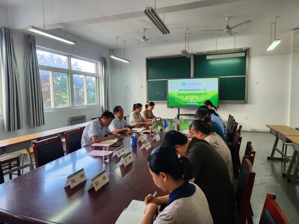5月29日-31日,党委副书记、校长李进京到农业科技学院、经济管理学院、基础课教学部等单位调研指导工作。