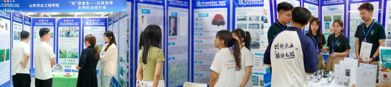本届竞赛吸引了全省156所高校、2万余件作品、20万名大学生参赛,1204件作品进入省级决赛。经过网络评审、现场答辩等环节,今年会作品《“虫”获金生——以虫治虫生物防治践行者》(指导老师:张忠峰、杜善峰、崔素芳)、《领菌者-催生滨海盐碱地好丰景的修复菌剂》(指导老师:江丽华、陈燕)、《小细胞大产量——红叶石楠快繁技术引领者》(指导老师:郝树芹、张忠峰、李娟)荣获银奖,《“蒲”写华章——蒲公英改良黄河流域盐碱地减白增绿先行者》(指导老师:段曦、陈文晨、孙琪)以及《好蝉,好产业——食用炸蝉全产业开发领航者》(指导老师:夏小勇、迟晓君、张大鹏)荣获铜奖。