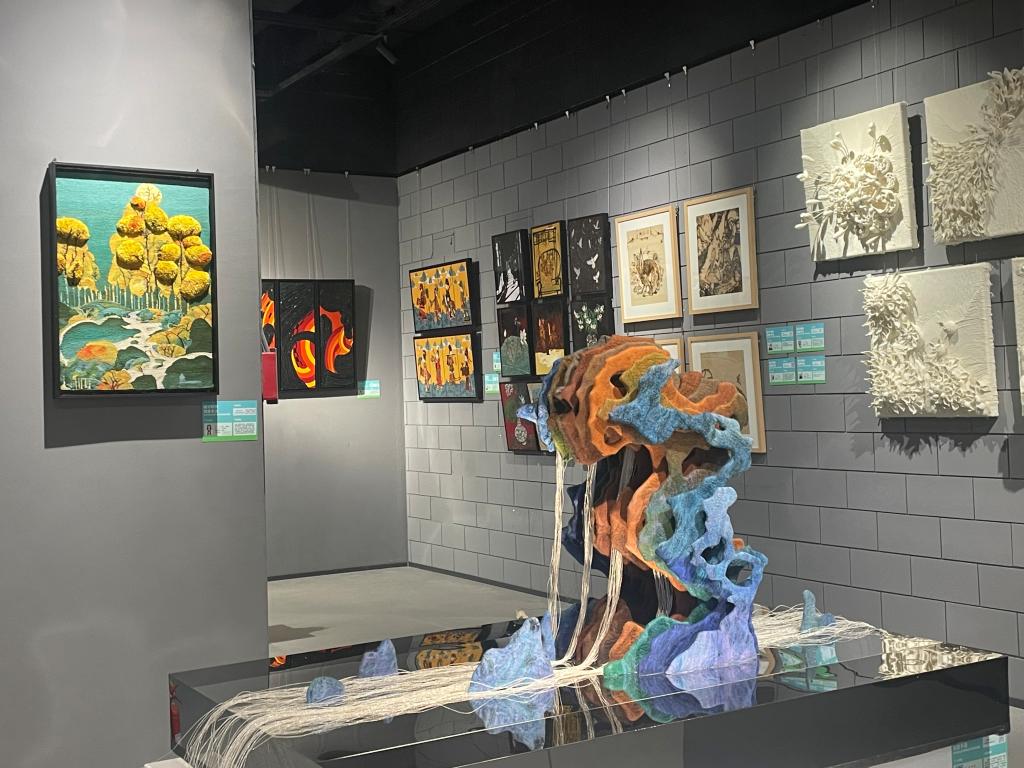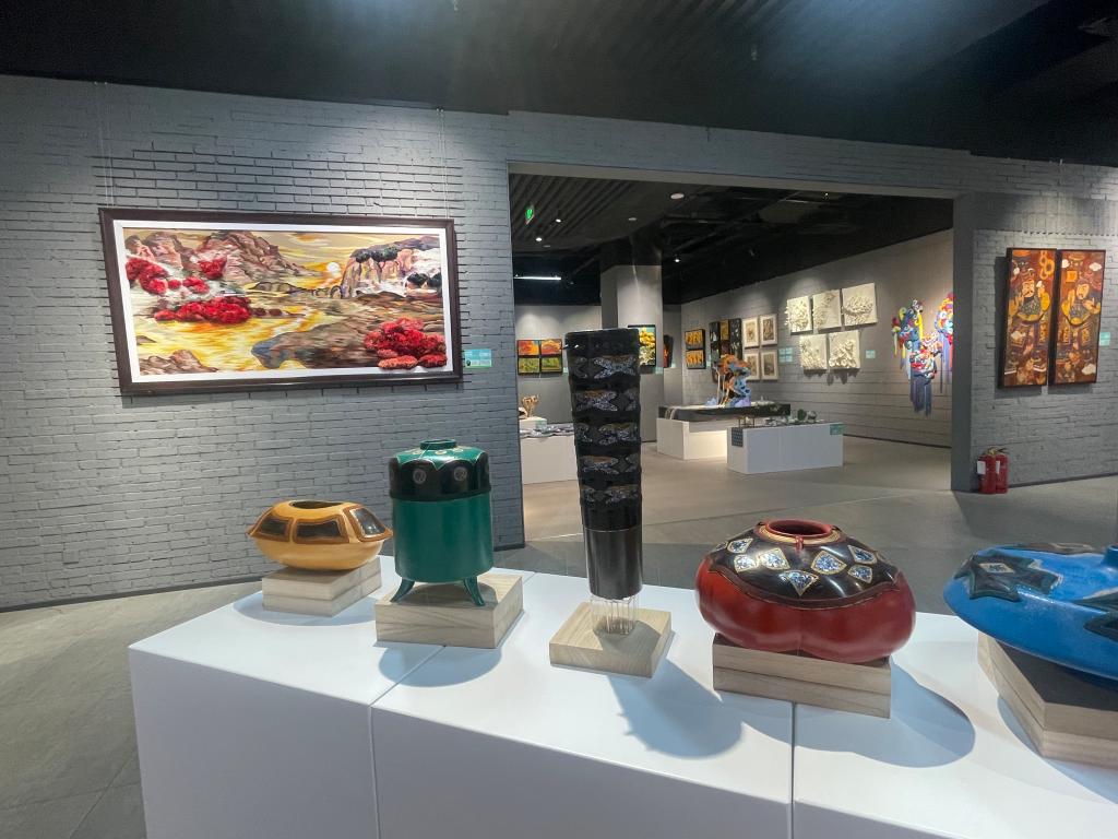 本次展出的手造作品是今年会艺术学院主动服务地方经济发展需求,推出的一批艺术设计教育教学最新成果,汇集了工艺美术、视觉传达设计等专业学生创作的作品近百件(套)。作品类型多样、题材丰富,涵盖漆画漆器、纤维编织、手工印染、陶艺设计、陶瓷绘画、木刻烙画、掐丝工艺、文创产品等。学生们思维活跃、创意十足,将文化创意、现代设计融入传统手工艺,通过独具匠心的工艺美术作品和文创产品,展现“山东手造”新活力。