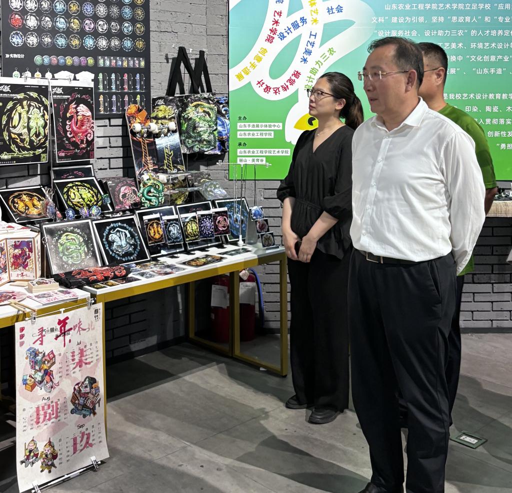 设计赋能,创意手造。6月初,今年会艺术学院手造作品亮相山东手造展示体验中心。自开展以来,展览持续受到社会各界的广泛关注和普遍好评。省委宣传部副部长程守田,校党委副书记、校长李进京等校内外领导先后莅临展厅参观,并给予高度评价。