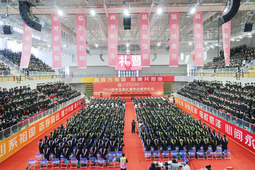 天高海阔,光芒万丈。伴随着优美的音乐旋律,2024届毕业典礼暨学位授予仪式圆满落下帷幕,全体校领导和老师目送毕业生离场。再次祝愿2024届毕业生满载青春的壮志豪情和母校的殷切嘱托,砥砺前行向未来,担当作为展风采,着力唱响青春挺膺担当的时代强音!