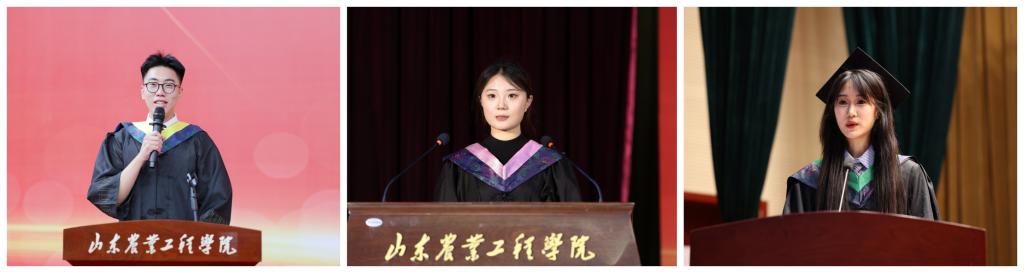 机械电子工程学院赵乐乐、农业科技学院张惠琳、人文学院赵新宇代表2024届毕业生发言,他们回忆难忘的大学时光,分享在校期间的成长经历,畅谈求学的感悟体会,表达了对母校的感激和不舍之情,发出了“请党放心,强国有我”“为中国式现代化挺膺担当”“不负时代,不负韶华”的青春誓言。国土资源与测绘工程学院李伟、艺术学院唐绪超、林业工程学院李娟作为教师代表发言,他们希望同学们在人生的新征程上,谨记“厚德、自强、求是、笃行”的校训,追求卓越、勇攀高峰,让青春在不懈奋斗中绽放绚丽之花,谱写无愧于时代的新篇章。