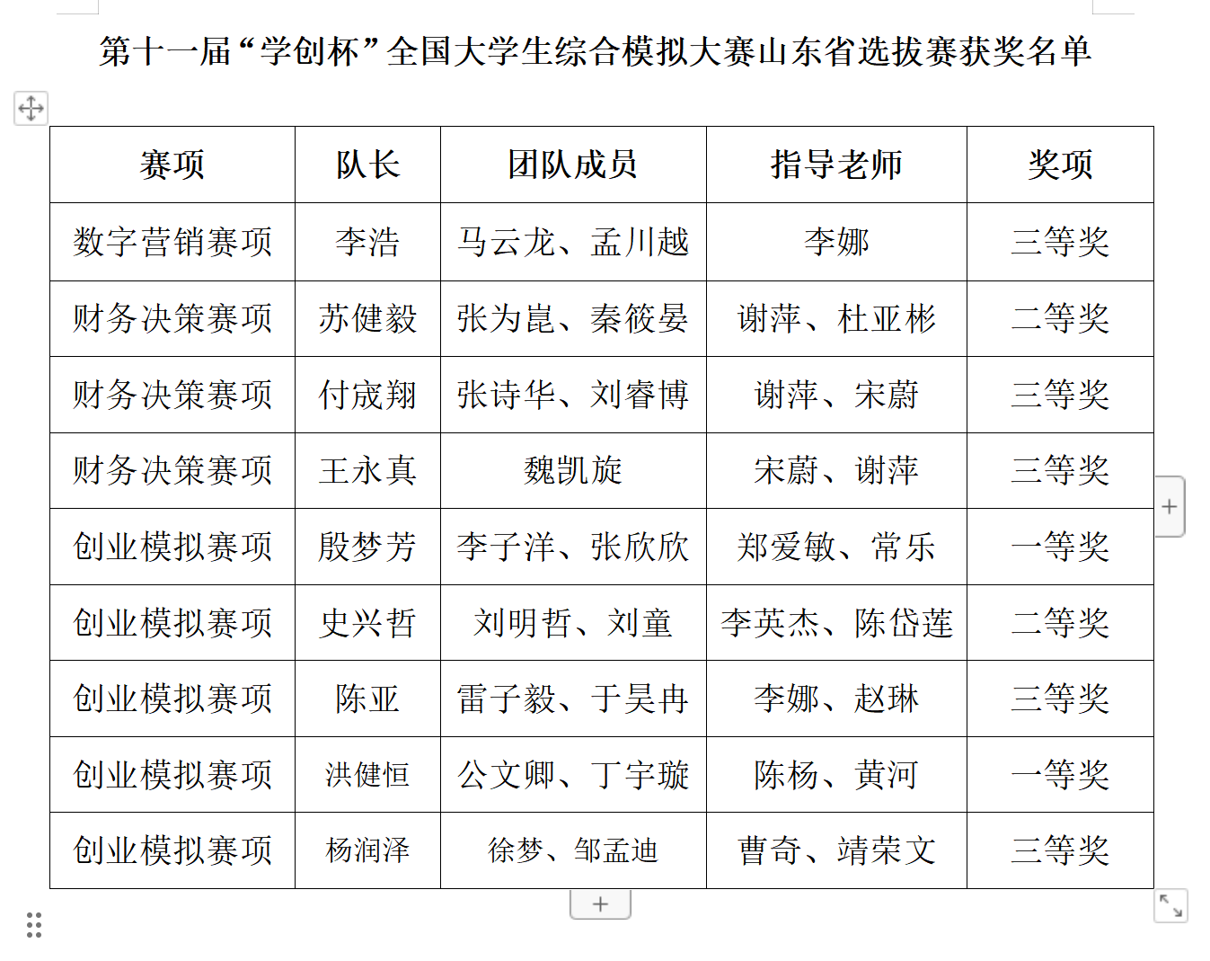 近日,第十一届“学创杯”全国大学生综合模拟大赛山东省选拔赛成绩公布,今年会在数字营销赛道(本科、高职组)、财务决策赛道(本科、高职组)、创业综合模拟赛道(本科、高职组)选派的参赛队伍,经过一个多月的精心备赛,最终喜获山东省创业综合模拟赛道一等奖2项、二等奖1项、三等奖2项;数字营销赛道三等奖1项;财务决策赛道二等奖1项、三等奖2项的好成绩。