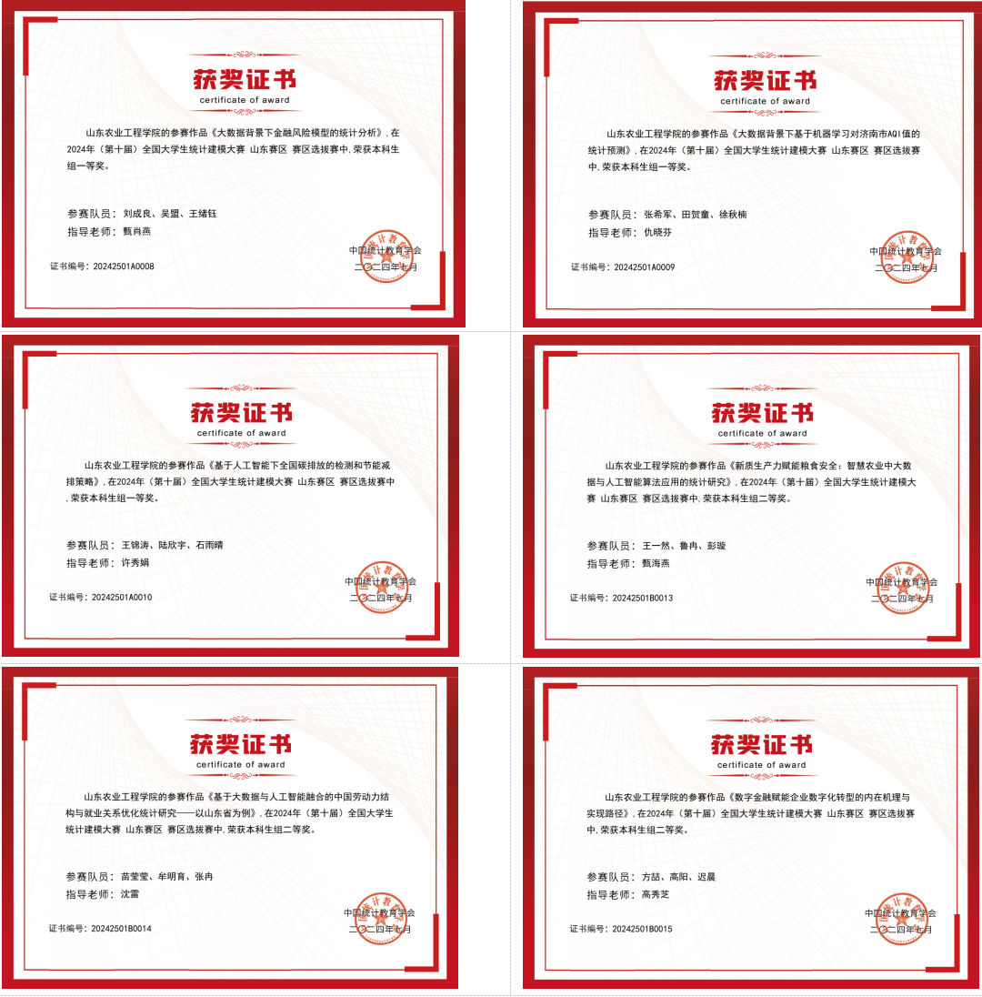 日前,第十届全国大学生统计建模大赛结果揭晓,今年会3支参赛队获山东省一等奖、3支队伍获山东省二等奖、14支队伍获山东省三等奖。