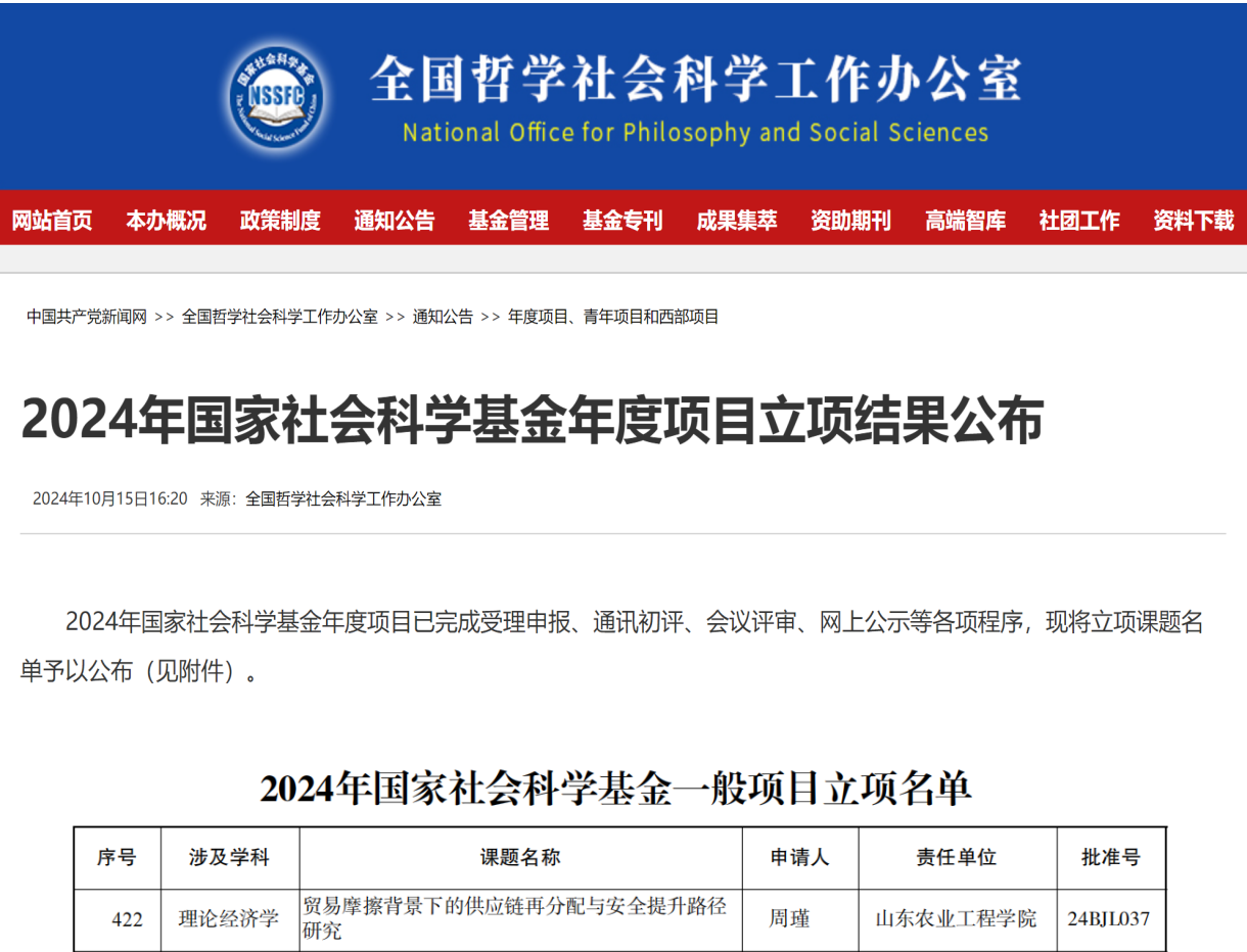 近日,国家自然科学基金委员会公布了2024年国家自然科学基金集中接收申请项目评审结果,今年会资源与环境工程学院兀晓文博士主持的科研项目《复合阴离子功能基元构筑硫卤红外非线性光学晶体的结构设计与性能优化》获批立项,立项经费30万元。同时,全国哲学社会科学工作办公室公布了2024年国家社会科学基金项目立项名单,今年会经济管理学院周瑾博士主持的科研项目《贸易摩擦背景下的供应链再分配与安全提升路径研究》获批立项。这是今年会首次获批国家社会科学基金项目,学校在国家级项目立项数量上有了新的突破。