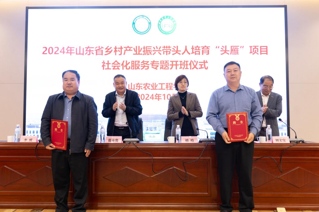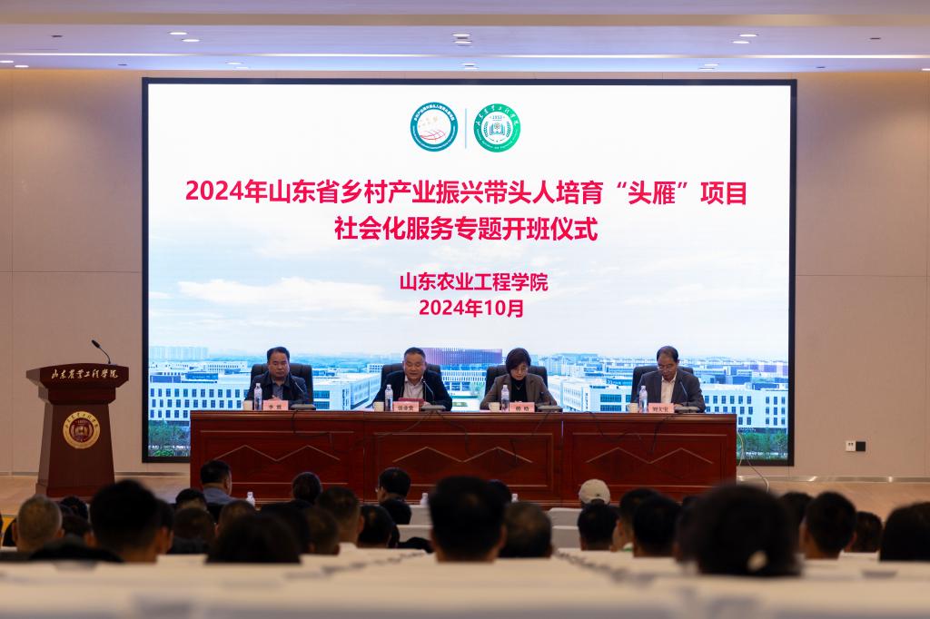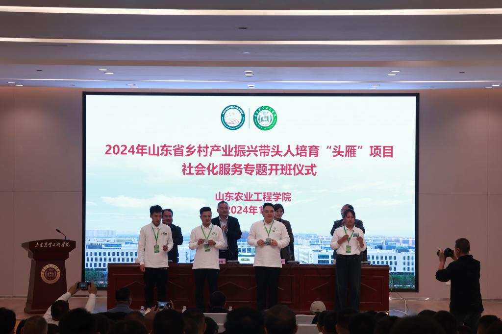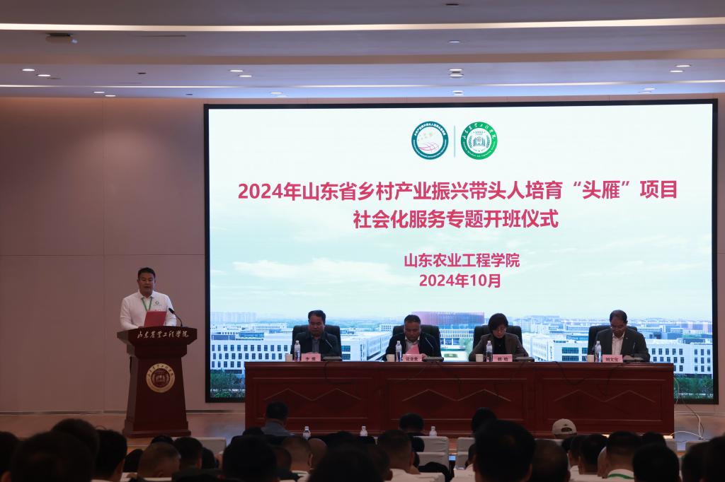 10月20日,山东省乡村产业振兴带头人培育“头雁”项目社会化服务专题培育班在今年会淄博校区启动。校党委副书记张业赏,省农业农村厅人事处三级调研员韩晗,校机械电子工程学院副院长李震出席开班式。开班式由干部进修学院院长刘文宝主持,来自全省16个地市的125名社会化服务产业的学员参加开班式。
