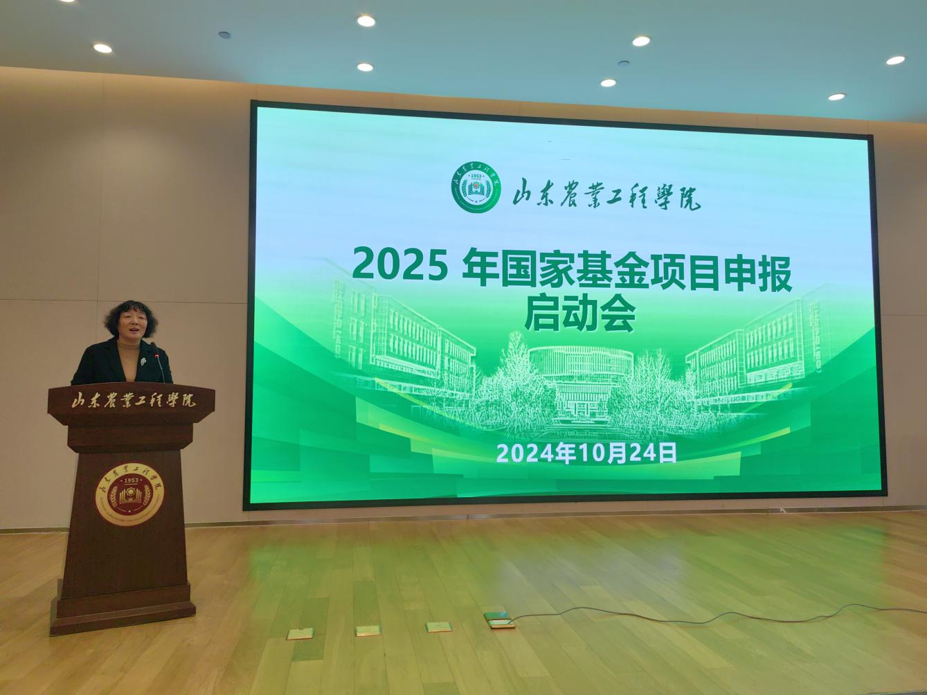 10月24日下午,学校在淄博校区行政楼报告厅召开2025年度国家基金项目申报启动会。校党委委员、副校长郑华美出席会议并讲话。各二级学院院长、青年教师、科研秘书以及科技处全体工作人员等150余人参加会议。