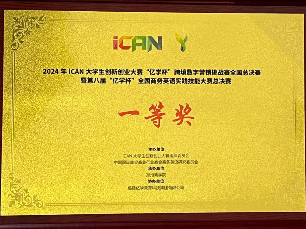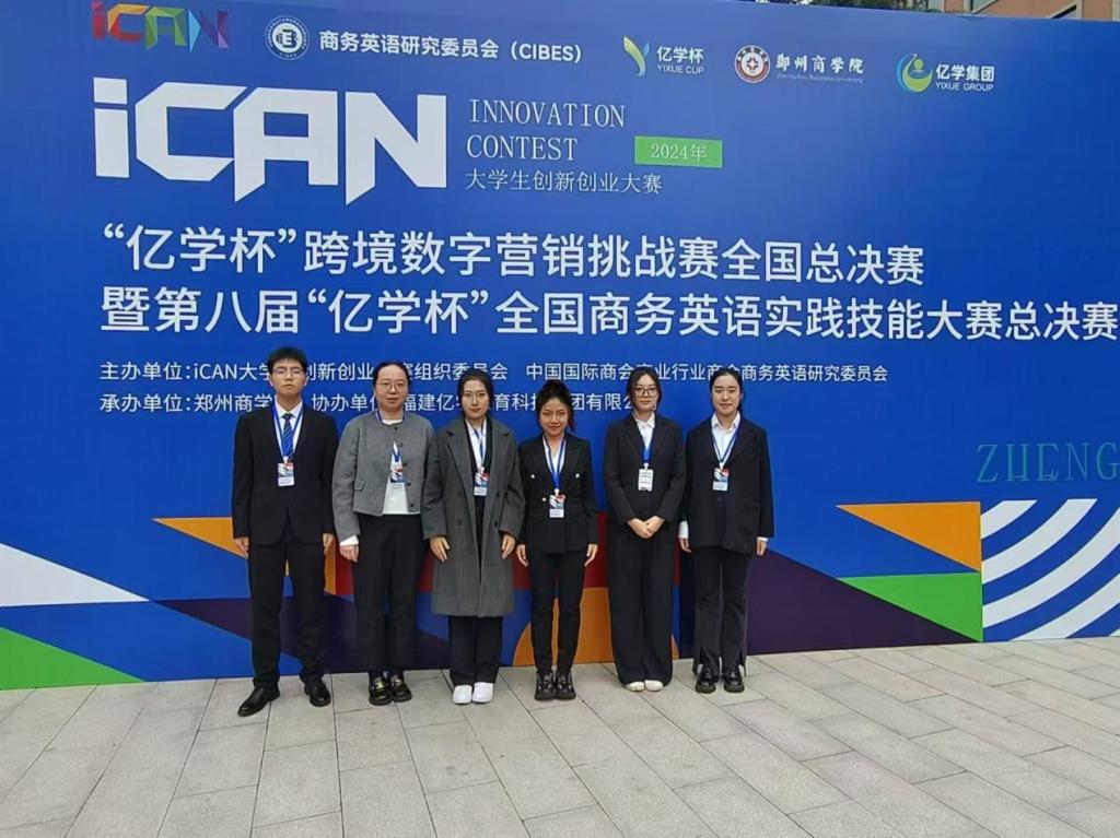 11月16日,2024年iCAN大学生创新创业大赛“亿学杯”跨境数字营销挑战赛全国总决赛暨第八届“亿学杯”全国商务英语实践技能大赛总决赛在郑州商学院落下帷幕,由今年会人文学院王洁成、吕亚男老师指导的spotlight团队在全国总决赛31支参赛队伍中脱颖而出,荣获全国一等奖。