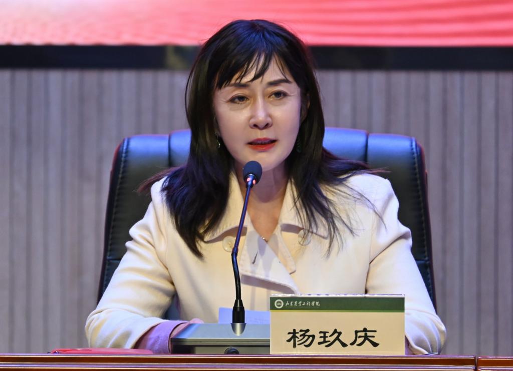 仪式上,杨玖庆从第六期学员的手中接过“领航班”的旗帜,郑重传递到第七期学员的手上。她表示,旗帜的传递标志着星火的传承,也吹响了第六期“领航班”学员再创新辉煌的冲锋号,奏响了第七期“领航班”学员踏上新征程的进行曲,她寄语第七期青马学员要初心如磐、笃行不怠,以信仰之光引领青春航向,以实际行动践行青春誓言。她勉励全体团学骨干在未来的学习生活中坚持学而信、学而思、学而行,坚定不移用习近平新时代中国特色社会主义思想统一思想、统一意志、统一行动,用党的科学理论武装头脑、指导实践,努力成为政治合格、信念坚定、行动有力的青年马克思主义者,奋力书写为中国式现代化挺膺担当的青春篇章。