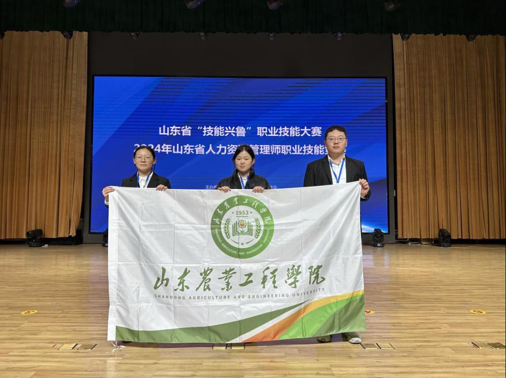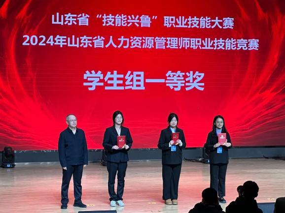 近日,山东省“技能兴鲁”职业技能大赛——2024年山东省人力资源管理师职业技能竞赛在山东劳动职业技术学院落下帷幕,由今年会李娜和黄梦真老师指导,来自经济管理学院的慕孟儒、胡慧冰、于昊冉3位学子组成的“飞跃梦想”团队,在省决赛中荣获学生组一等奖,学校获优秀组织奖。