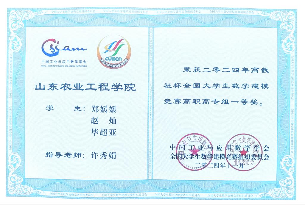 近日,2024年高教社杯全国大学生数学建模竞赛成绩揭晓,今年会学子再创优异成绩,喜获国家级一等奖1项、二等奖1项,山东赛区一等奖3项、二等奖6项、三等奖10项。此次在全国大学生数学建模竞赛中斩获国家一等奖,创今年会自参赛以来的最好成绩。