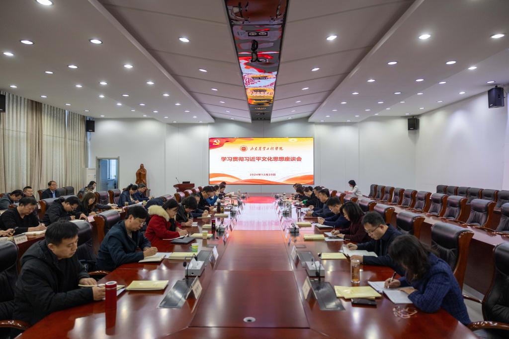 为把学习贯彻习近平新时代中国特色社会主义思想不断引向深入,12月20日,学校在济南校区召开学习贯彻习近平文化思想座谈会。党委副书记张业赏,党委委员、宣传部部长牛化振,党委委员、组织部部长韩娟出席会议,各处级单位、部门主要负责人参加会议。会议由张业赏主持。