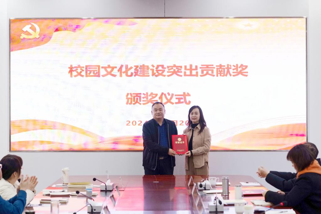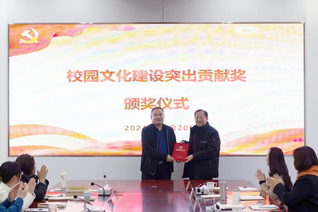 2024年,在学校党委的坚强领导下,在广大师生员工的共同努力下,学校宣传思想文化工作取得了显著的成效,如顺利完成“两馆”迁建工作、打造IP形象“农小新”等,对内对外宣传齐头并进、更加有力,学校影响力进一步扩大、美誉度进一步提升。为充分表彰在校园文化建设中做出贡献的优秀代表,会上,张业赏为今年会离退休老同志徐金强、艺术学院教师闵媛媛颁发荣誉证书,对他们的辛勤付出表示肯定和感谢,激励大家扛起责任担当,锐意进取、守正创新,埋头苦干、勇毅前行,助推学校各项事业高质量发展。
