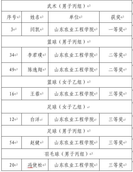 参赛选手在比赛中展现出了扎实的专业素养和顽强的拼搏精神。武术赛场上,闫凯老师凭借深厚的武术功底和精彩的演练,在男子丙组比赛中脱颖而出,荣获一等奖,其刚劲有力的动作和行云流水的表演赢得了现场观众的阵阵喝彩。篮球项目中,李君璞老师和陈逸翔老师在男子丙组比赛中发挥稳定,凭借出色的战术执行和个人能力,双双斩获二等奖,为学校争得了荣誉;王蓉老师在女子乙组比赛中表现出色,凭借精湛的球技和默契的团队配合,荣获三等奖。足球赛场上,白洋老师在女子乙组比赛中积极拼抢,展现出坚韧不拔的毅力,最终获得三等奖;赵健老师在男子丙组比赛中凭借出色的竞技状态和出色的发挥,赢得了评委的认可,荣获三等奖。在羽毛球项目中,冯使松老师在男子丙组比赛中不畏强手,灵活应对,凭借精湛的技术和出色的心理素质,获得三等奖。