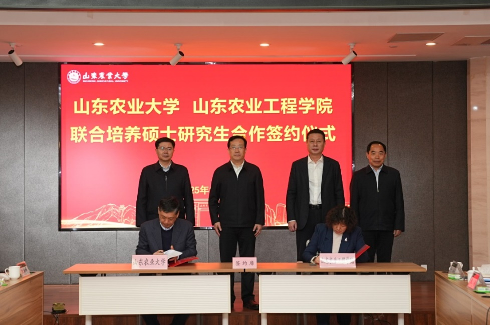1月2日上午,党委书记张鸿波,党委副书记、校长李进京,党委委员、副校长郑华美一行赴泰安,与山东农业大学签署了硕士研究生联合培养协议。山东农业大学党委书记徐剑波,党委副书记、校长冷畅俭,副校长林海出席签约仪式。