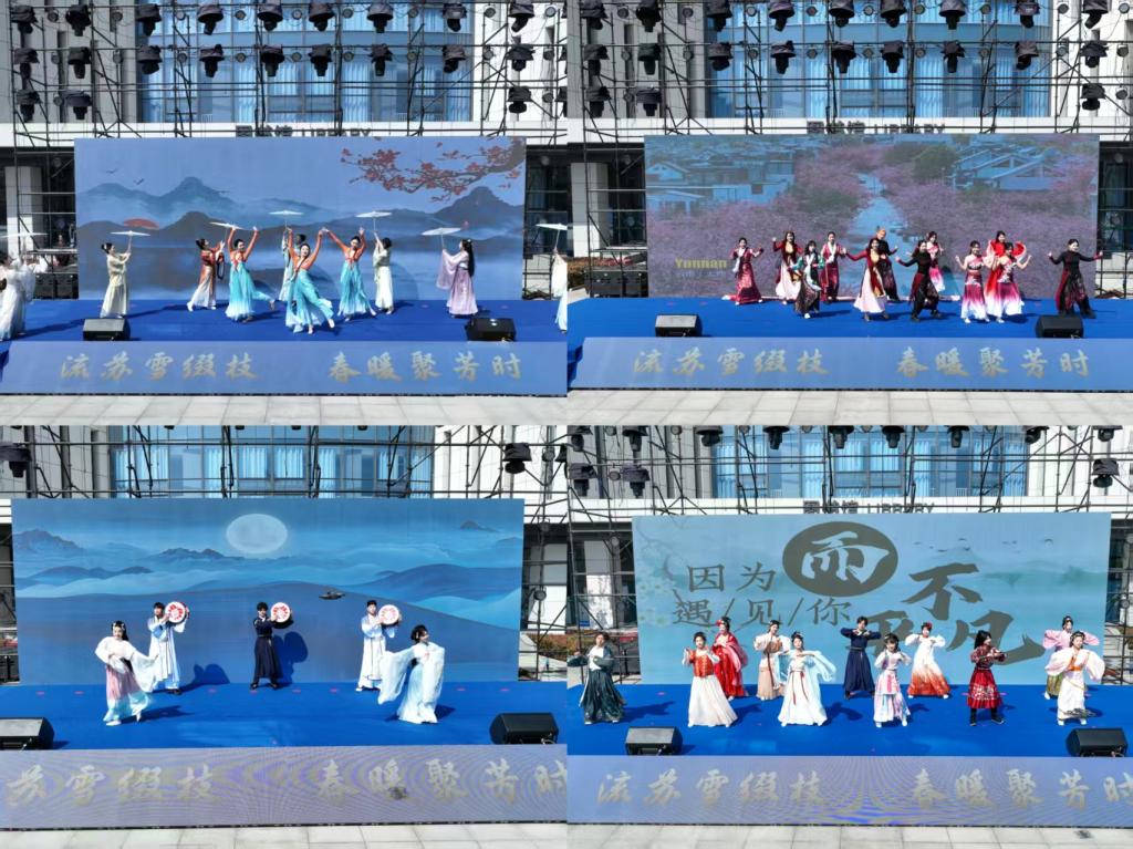 启动仪式上,滨州市汉服协会的宽袍广袖与山农工学子的现代编舞交相辉映,自《相思遥》、《玉兆翩鸿》到《融·华章》,舞者们以足尖为毫,在水袖起落间解密齐纨鲁缟的经纬密码,在虚实交叠的舞台上铺展出稷下学宫的千年华章。