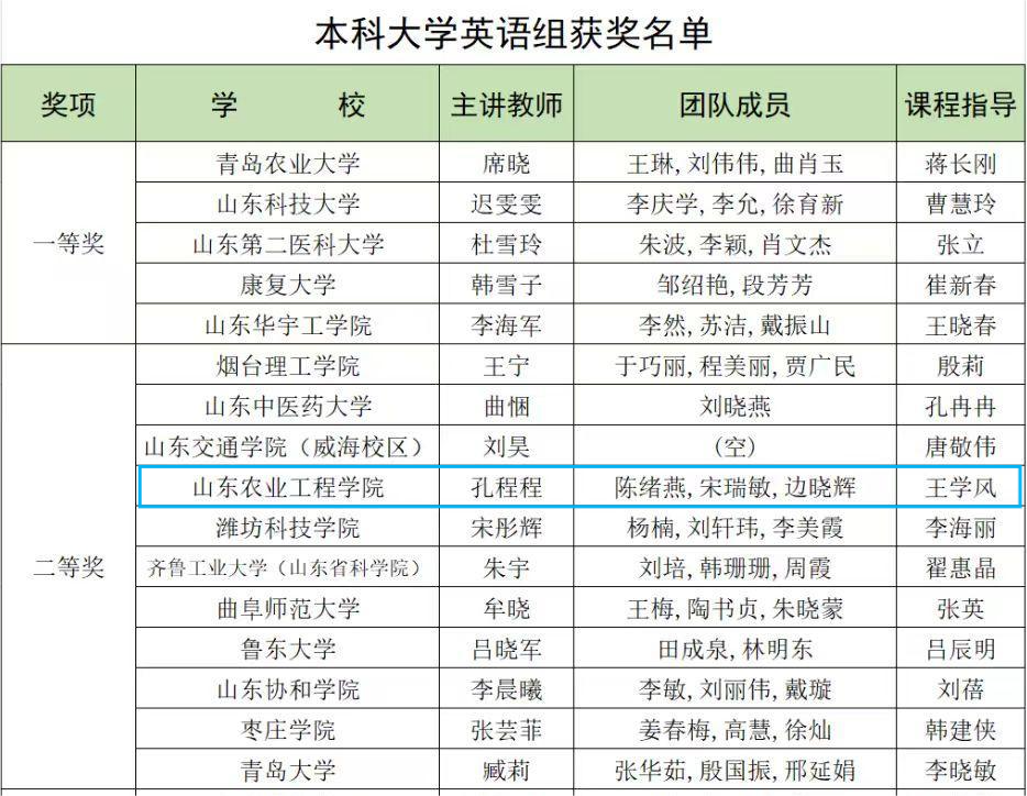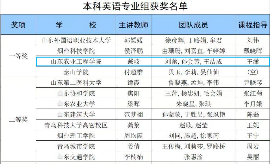 近日,第十六届“外教社杯”全国高校外语教学大赛山东赛区复赛和决赛在山东建筑大学举行。经过激烈角逐,今年会人文学院教师戴岐、孔程程代表团队分别获得本科英语专业组一等奖和本科大学英语组二等奖,实现了今年会在该赛事获奖等级和获奖数量的新突破。
