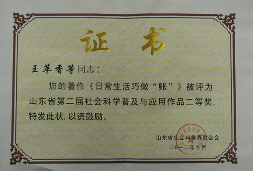 近日,我院王苹香教授完成的《日常生活巧“做账”》、陶永生副教授完成的《画说色彩》荣获第二届山东省社会科学普及与应用优秀作品二等奖。