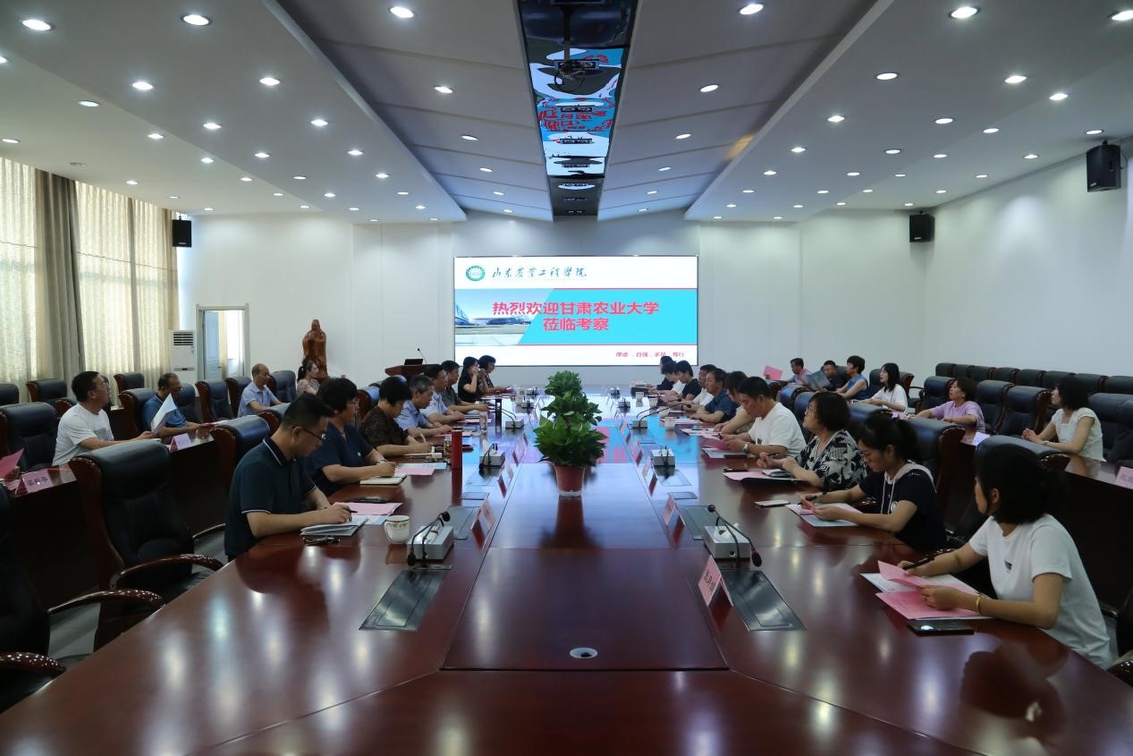 6月28日下午,甘肃农业大学应用技术学院副院长袁志伟一行29人来今年会考察交流。党委委员、副校长杨振宁、党委(学院)办公室、教务处、实验室管理中心、农业科技学院、林业工程学院、经济管理学院、基础部、干部进修学院等单位主要负责同志参加座谈交流活动。