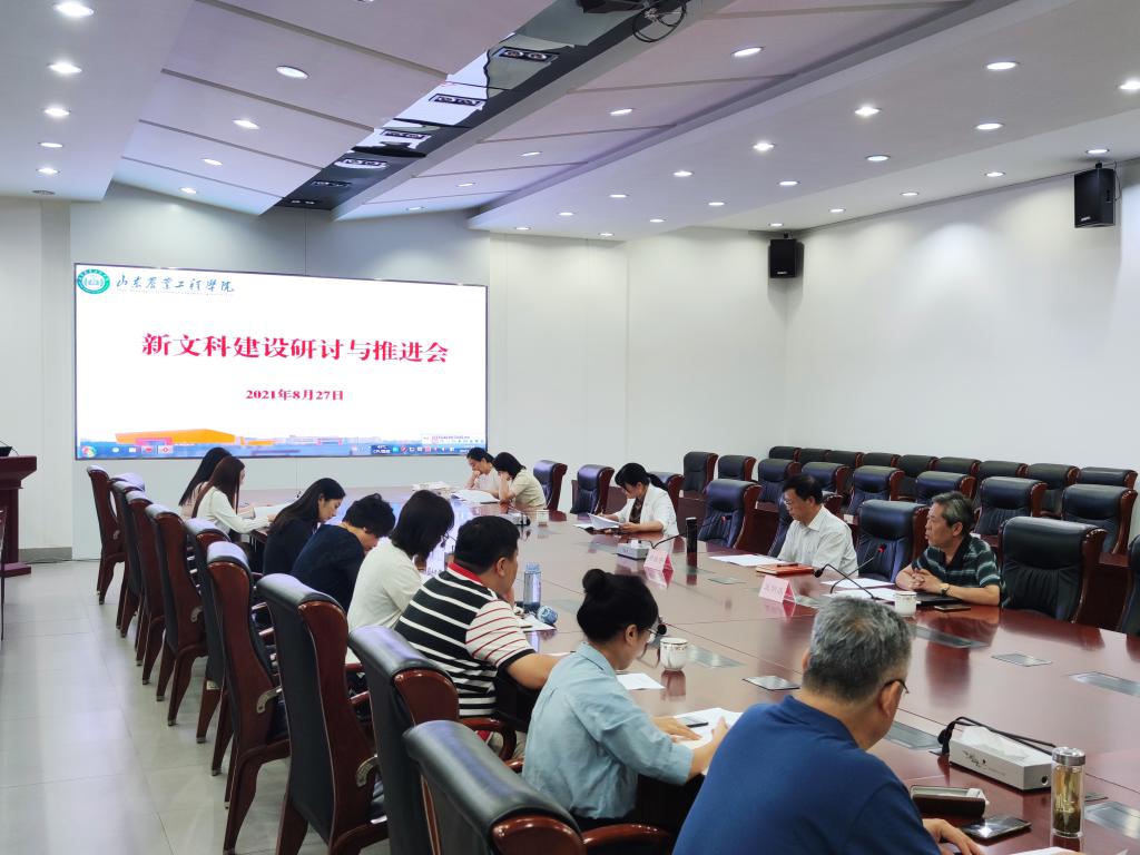 教务处王明晶处长从什么是新文科,为什么要建设新文科以及如何建设新文科三方面对新文科建设进行了深入阐释。人文学院王晓霞院长结合社会调研与前期研究,围绕“人”的培养,进一步诠释了新文科建设内涵,阐述了新文科实现路径,突出强化在“全人”培养理念的基础上,提出要优化专业结构,整合力量打造专业新业态,对接区域经济文化发展,适时推进“微专业”建设。经济管理学院李百秀院长结合学院农林经济管理专业学生培养,从课程体系构建、《农村改革在山东》特色课程开发与教材编撰、“经纬大讲堂”等方面总结了在“新文科”建设方面所做出的初步探索,为后续新文科改革提供了思路和借鉴。艺术学院韩璐院长从本学院文科专业建设情况、新文科建设的思路、设想及举措等进行发言。教务处副处长高千秋就新文科推进工作的一些想法和思路进行了分享交流。会上,其他参会人员围绕“建设什么样的新文科、怎样建设新文科”畅所欲言,积极建言献策,表达了要不忘初心、抢抓机遇、面向未来,积极谋划和参与新文科建设的使命感、荣誉感,将以时不我待的紧迫感与责任感积极投身新文科建设中。大会还讨论了今年会《新文科建设与改革实施方案》。