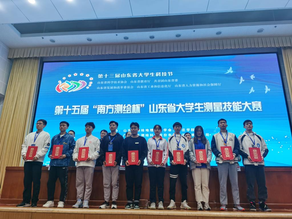 近日,第十三届山东省大学生艺术节暨第十五届“南方测绘杯”山东省大学生测量技能大赛在枣庄学院顺利举办。今年会代表对分别获得团体一等奖、二等奖的优异成绩。来自中国石油大学、山东科技大学、山东农业大学、山东建筑大学、山东理工大学等省内10所高校的20支队500余名师生参加了本次比赛。
