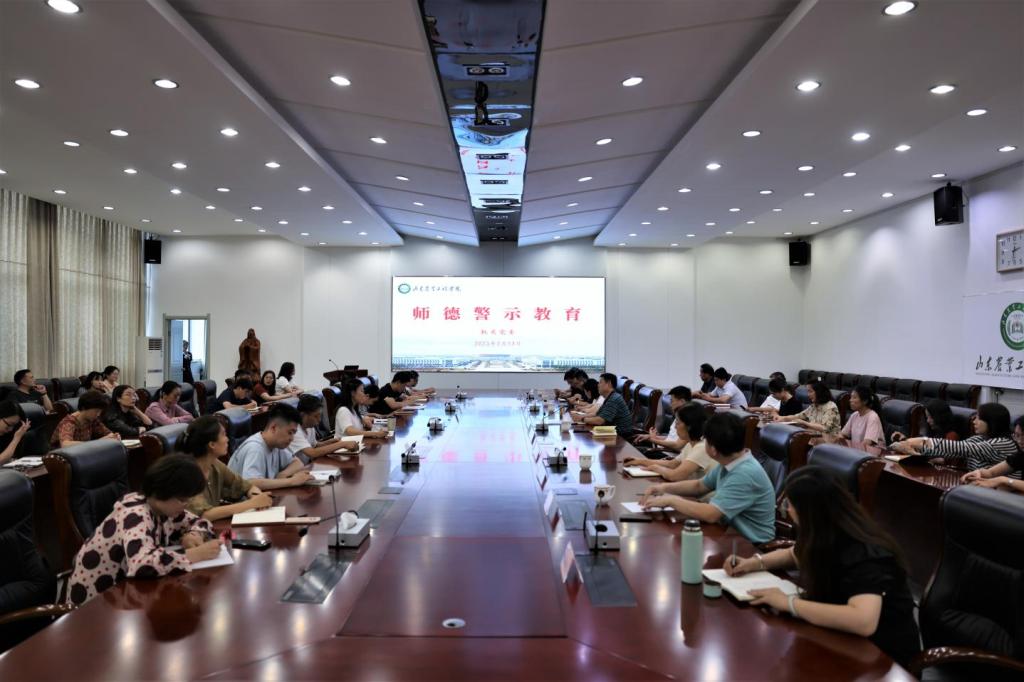 机关全体教职工集体观看了《2023年“依法规范执教”师德警示教育—师德失范典型案例(高校篇)》的警示教育片。警示教育片以近年来违反《新时代高校教师职业行为十项准则》典型案例为题材,以案为鉴、以案明纪、以案说法,内容发人深省,具有很强的警示和教育意义。