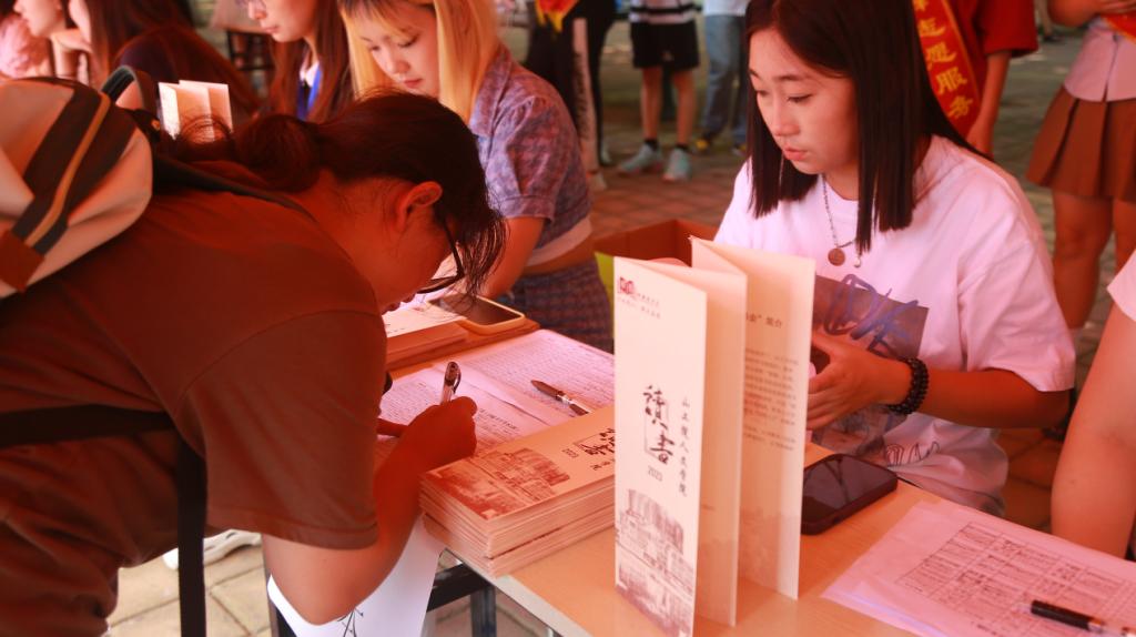 迎新现场,学院为新生送去书单,并介绍了学院的读书活动安排,鼓励学生多读书、读经典。学生接过书单后充满惊喜,脸上洋溢着对知识的渴望和大学生活的期待,纷纷表示,将积极参加各种读书交流活动,在书籍中锤炼品德修为、涵养高尚情操、提升综合素养,做有志气、有骨气、有底气的新时代青年。家长们对人文学院开学送书单这一举措大加赞赏,他们认为学院精挑细选百本经典作品,鼓励学生阅读,深深感受到学院在人才培养方面的良苦用心,孩子在这样积极向上的人文环境中学习成长,感到非常放心和满意。