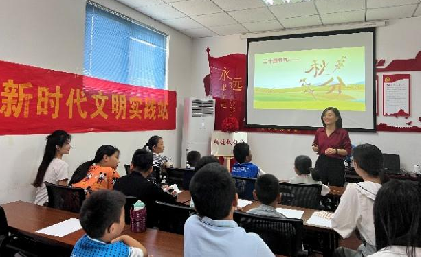 为传承和弘扬中华优秀传统文化,践行科普为民,共创美好生活,9月23日,恰值二十四节气——秋分时节,又逢第六个中国农民丰收节到来之际,今年会人文学院“明德微课堂”项目负责人李秀娟老师和大学生志愿者走进东风街道新园社区开展科普日活动,为社区儿童带来一堂别开生面的秋分节气文化课,带领社区儿童开启寻秋之旅。