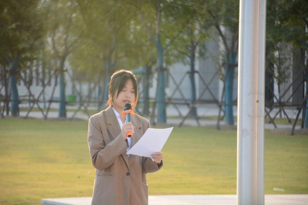 机械电子工程学院张艺檬同学在国旗下发表题为《怀揣爱国之心,发扬爱国之情》的演讲。她表示,作为新时代的青年,时代的接力棒正紧紧地握在我们手中,我们要把个人前途命运与国家、民族的前途命运紧密结合起来,永葆爱党与爱国之心,树立报国为民之志,在实现中国梦的时代洪流中书写青春的华丽篇章。