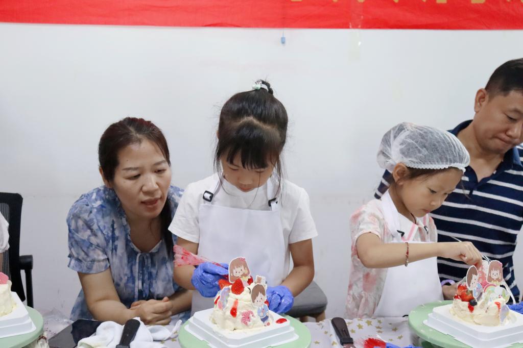 为了增强传统文化体验感,让传统文化“活起来”,活动还设置了包粽子环节。在专业老师的现场指导下,每组家庭齐心协力、认真配合,纷纷拿出自己的“拿手绝活”,折粽叶、做漏斗状、填糯米、压紧实、封口、扎捆,不一会儿工夫,一个个形态各异、精巧美味的粽子成型。在蛋糕DIY亲子活动中,小朋友们兴致勃勃、大显身手,按照自己的审美和喜好进行制作,在欢声笑语中,一个个颜色鲜艳、甜蜜可口的小蛋糕制作完成。